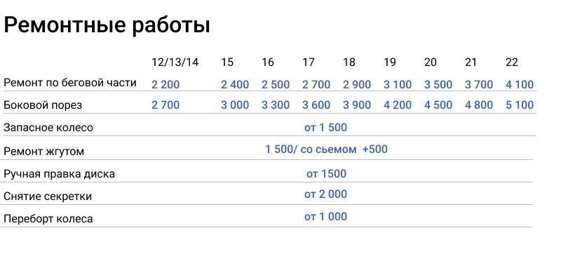 Мы выполняем полный спектр обслуживания колес на выезде. Ремонт боковых порезов, сезонный шиномонтаж, балансировка, установка запасного колеса, подкачка, ремонт проколов, правка и сварка дисков. А также ремонт колес спец. техники до 5 тонн. Вы получите полную гарантию на все виды работ от наших профессионалов, и можете быть уверенными в надежной работе своего автомобиля.